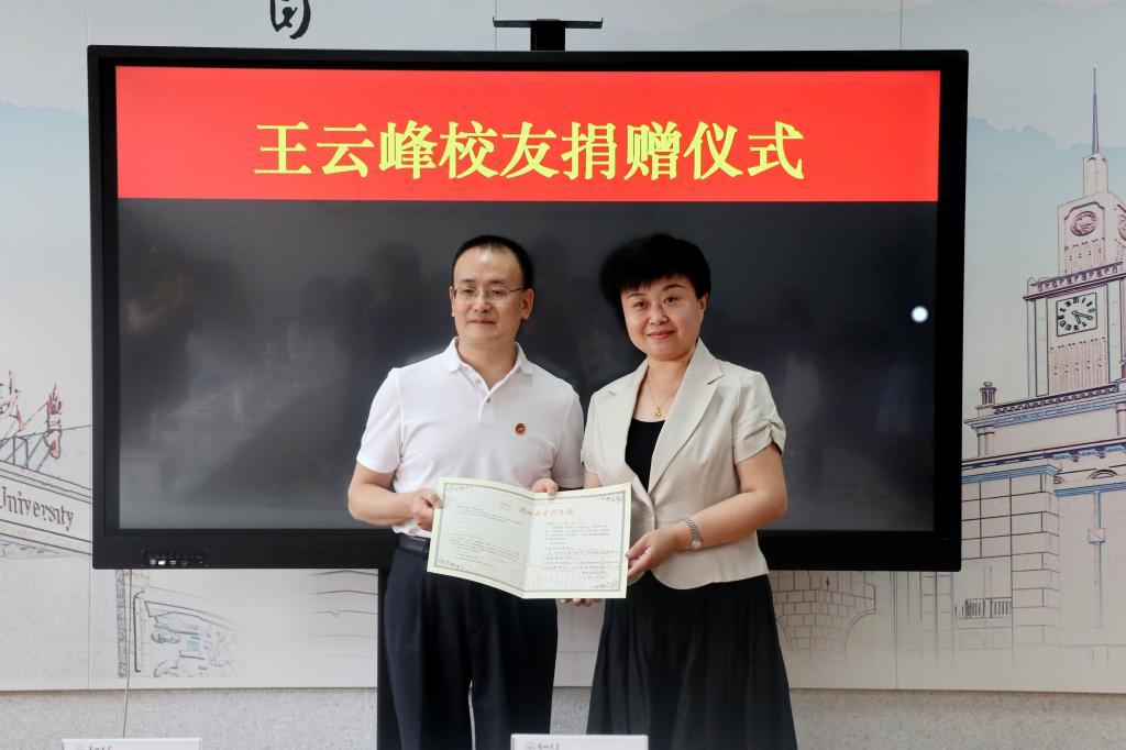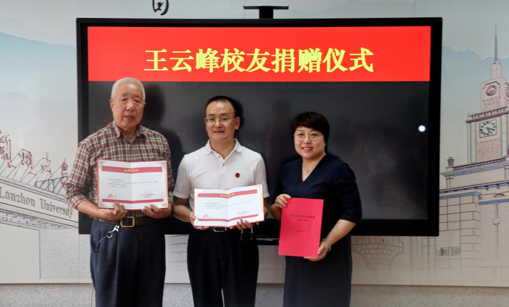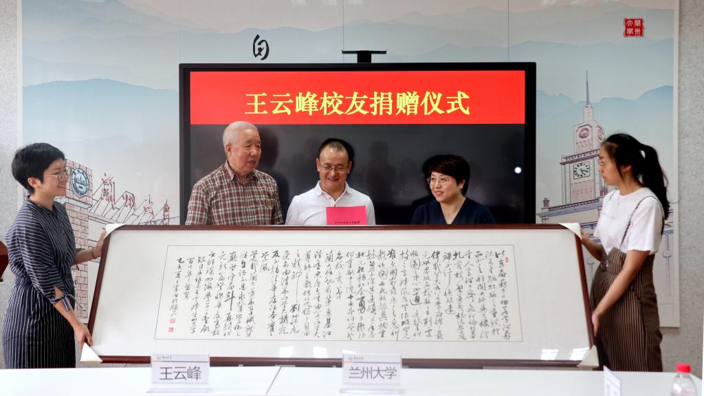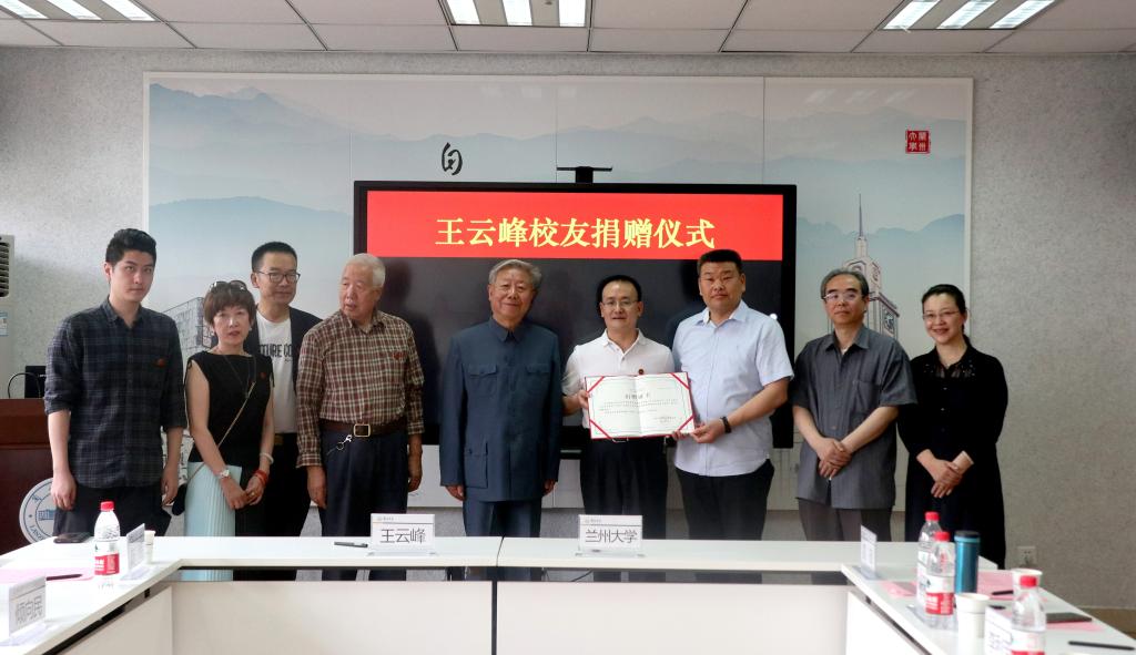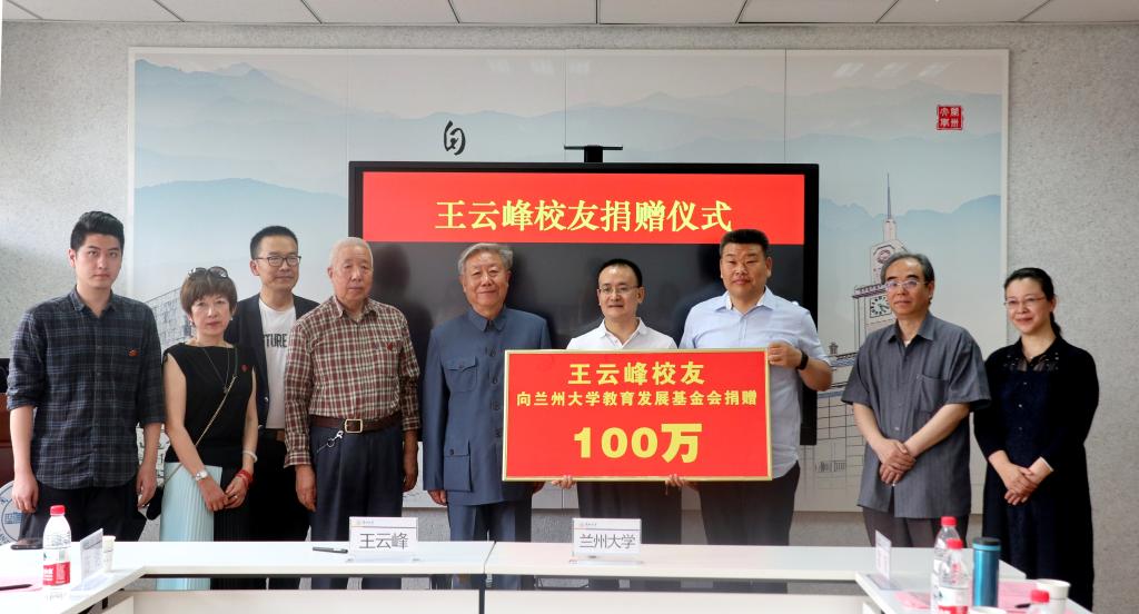 6月14日,王云峰校友捐赠仪式在兰州大学校友之家举行。我校文学院81级校友、广州珠江云峰控股集团顾问、贡唐利生会副会长王云峰向兰州大学捐资100万元人民币用于支持兰州大学教育事业发展。