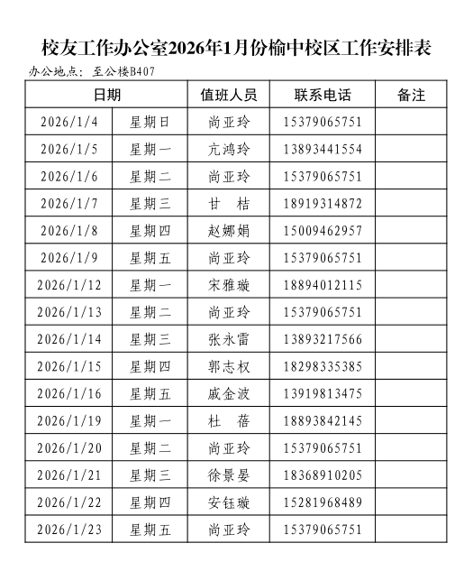 兰州大学教育发展基金会、校友工作办公室2026年1月榆中校区值班安排
