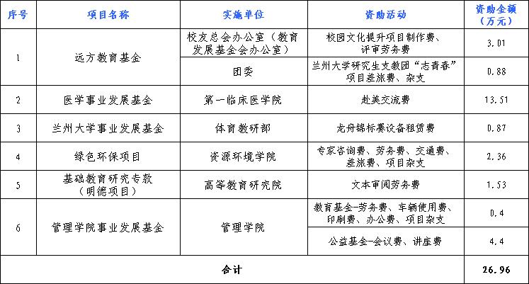 捐赠使用公示丨兰州大学教育发展基金会2020年4月捐赠使用情况