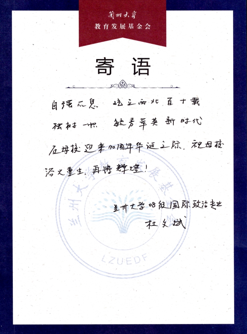 杜文斌校友捐赠寄语